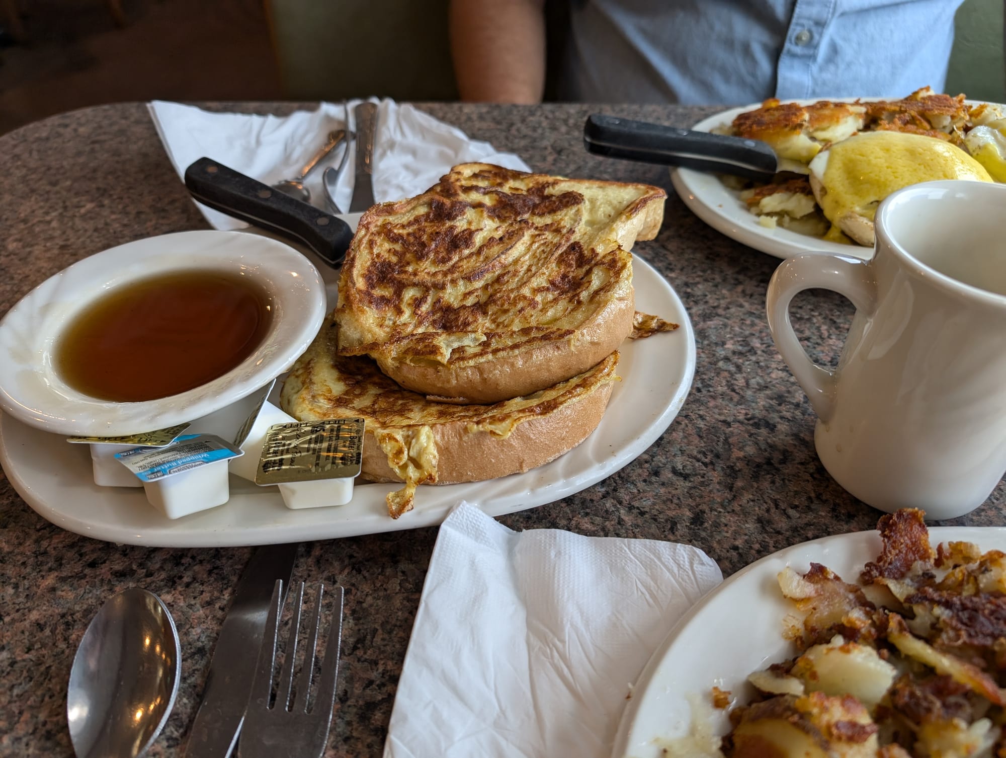 As a bonus, we got cinnamon swirl French toast. Although no longer open, Butter Valley Golf Port will always have the best quality cinnamon swirl French toast, so we are always on the lookout for anything like it. Unfortunately, Chris's does not match that quality at all. The French toast itself was pretty good, but I think the batter for it was a little on the eggy side (not my favorite). It was supposed to come with a cinnamon flavored syrup, but I didn't get a lot of the cinnamon flavor. Overall it was just very okay-quality French toast.