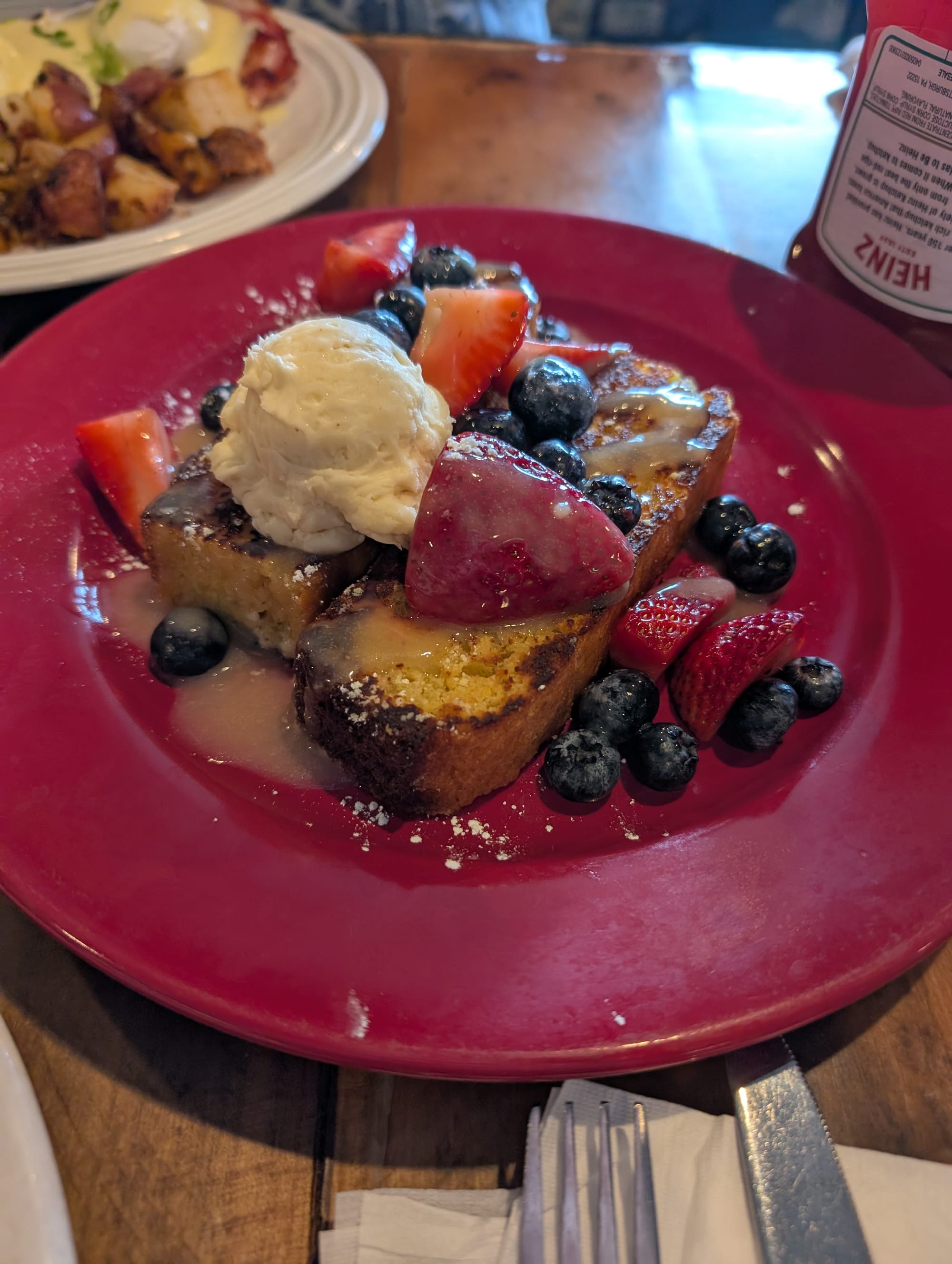 I picked out the cornbread french toast, and it was not my favorite. It was kind of a mess. I feel like part of my problem with it is that it had lemon curd with lavender in it. That sounded really nice to me, but at the same time, I felt like generally anything that has a super floral scent could be too perfumey and it definitely felt that way with this. The big scoop of butter that was on top didn't melt even a little bit and I had to keep taking off like pieces of cold butter to put on each bite. Not good.