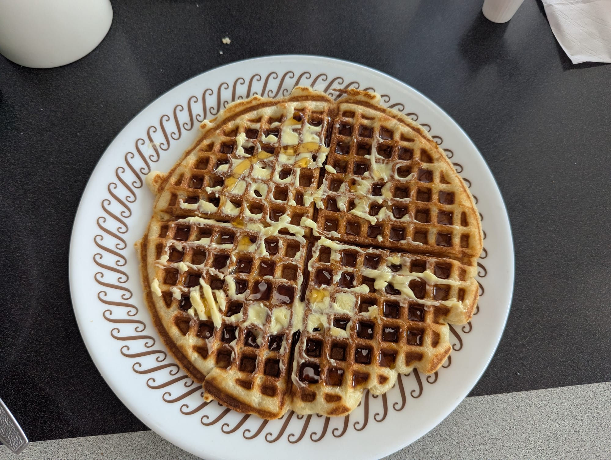 I shared the waffle with Ben and the waffles are just fine. It’s called Waffle House, but the waffles are not special. It’s fine, just a bit dense and again, not much going on. I’ve had better waffles other times I have been here, but when you drown it in their butter and syrup, it’s an okay way to end breakfast on a sweet note.